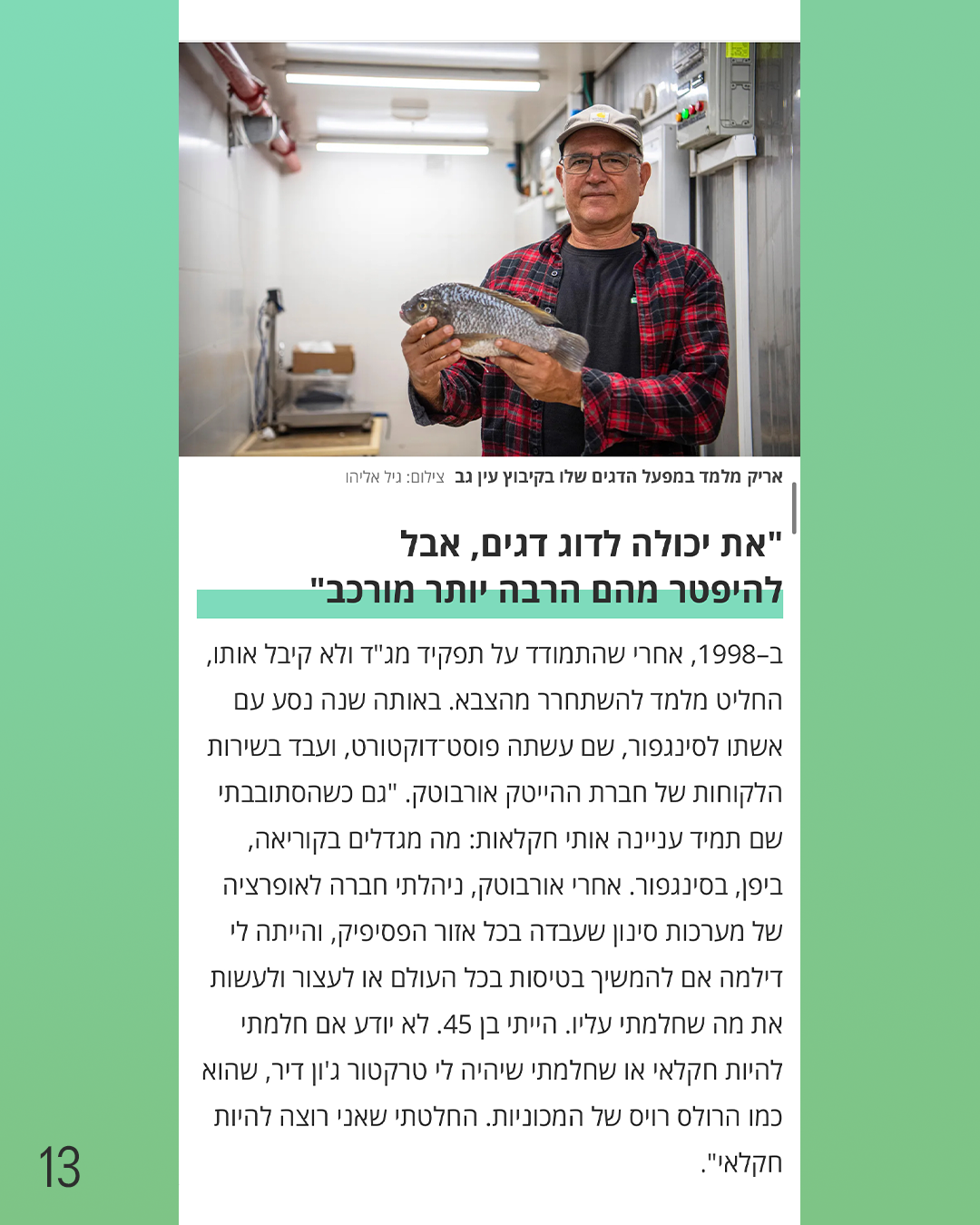 אריק מלמד החליט להחזיר את דגי הכנרת למטבח הישראלי